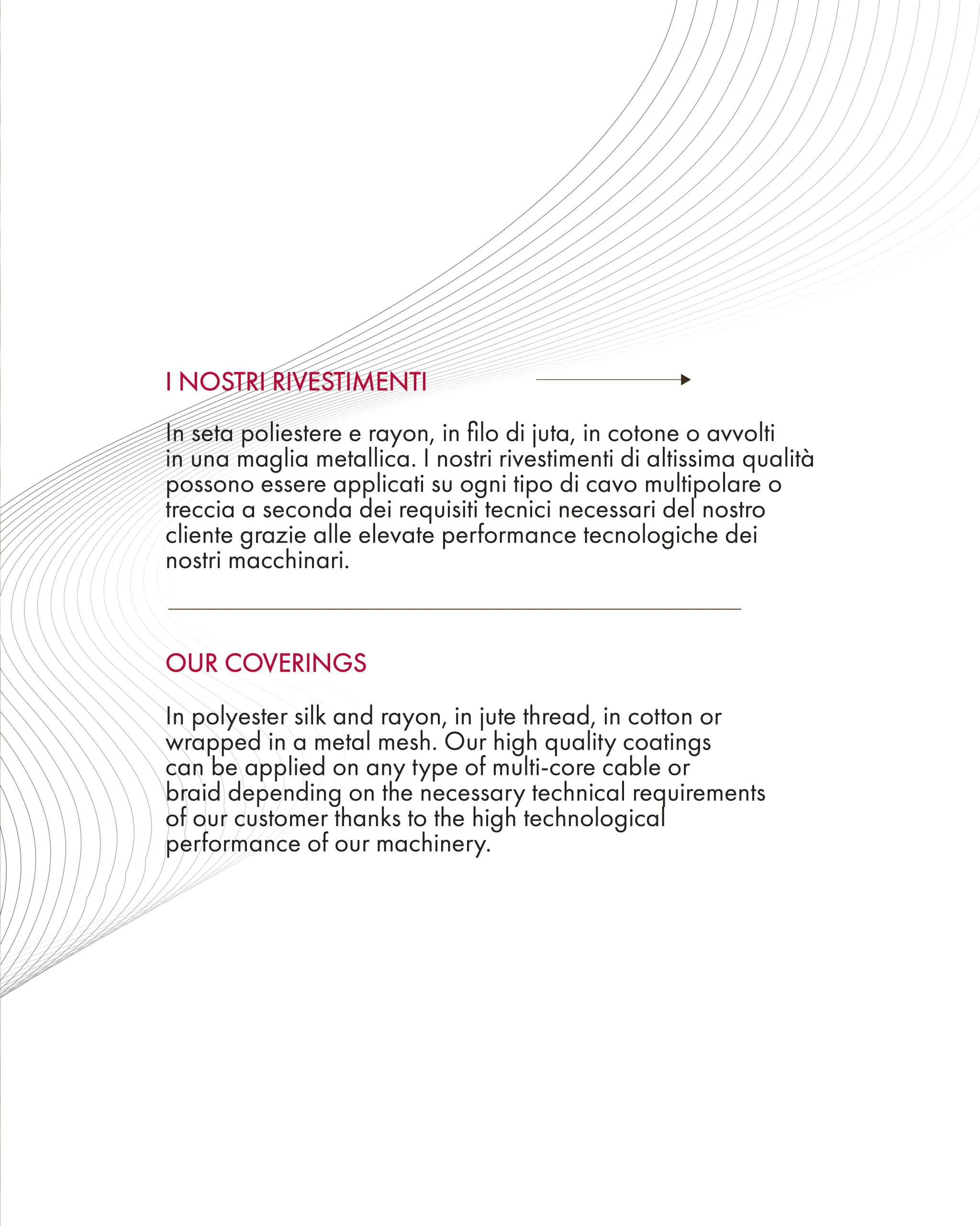 Ogni rivestimento è progettato per adattarsi a qualsiasi tipo di cavo multipolare o treccia, garantendo prestazioni elevate grazie alla precisione dei nostri macchinari.